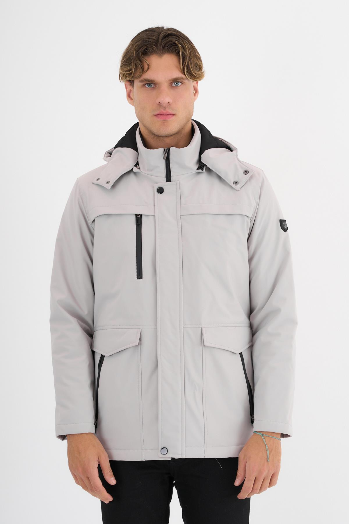 Erkek Beyaz %100 Su Ve Rüzgar Geçirmez Kürklü Çıkartılabilir Kapüşonlu Mont&Kaban