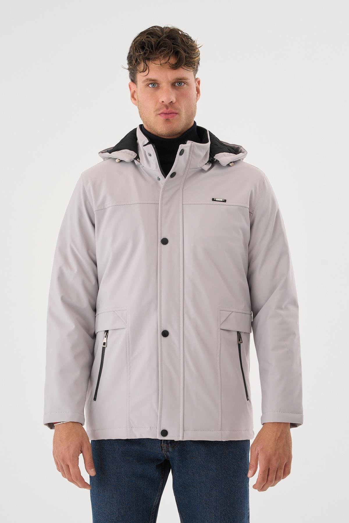 Erkek Beyaz %100 Su Ve Rüzgar Geçirmez Kürklü Çıkartılabilir Kapüşonlu Mont&Kaban