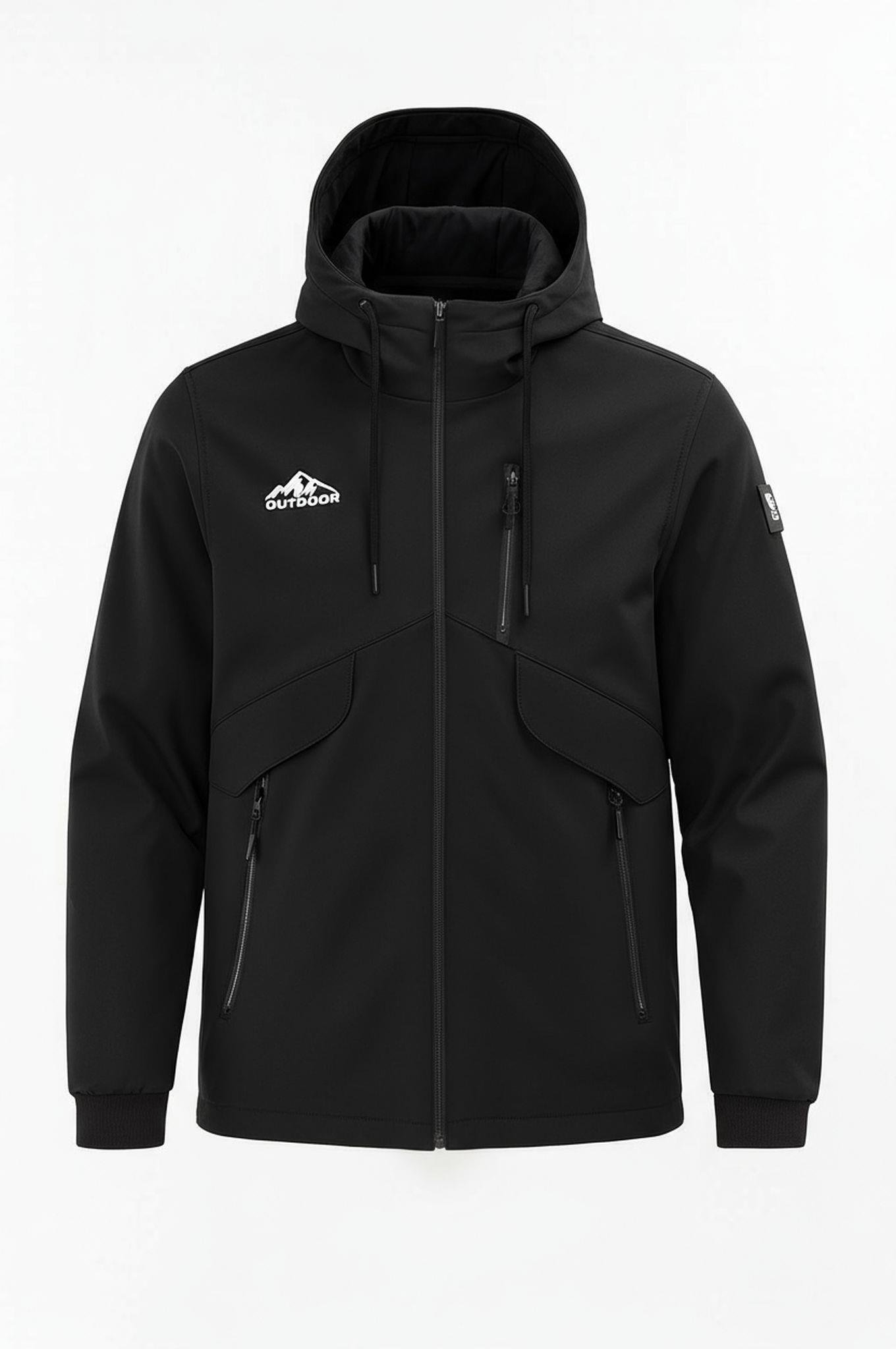 Erkek Çocuk Siyah Outdoor Su İtici Kapüşonlu Kaban – Rüzgar Geçirmez, Hafif ve Dayanıklı