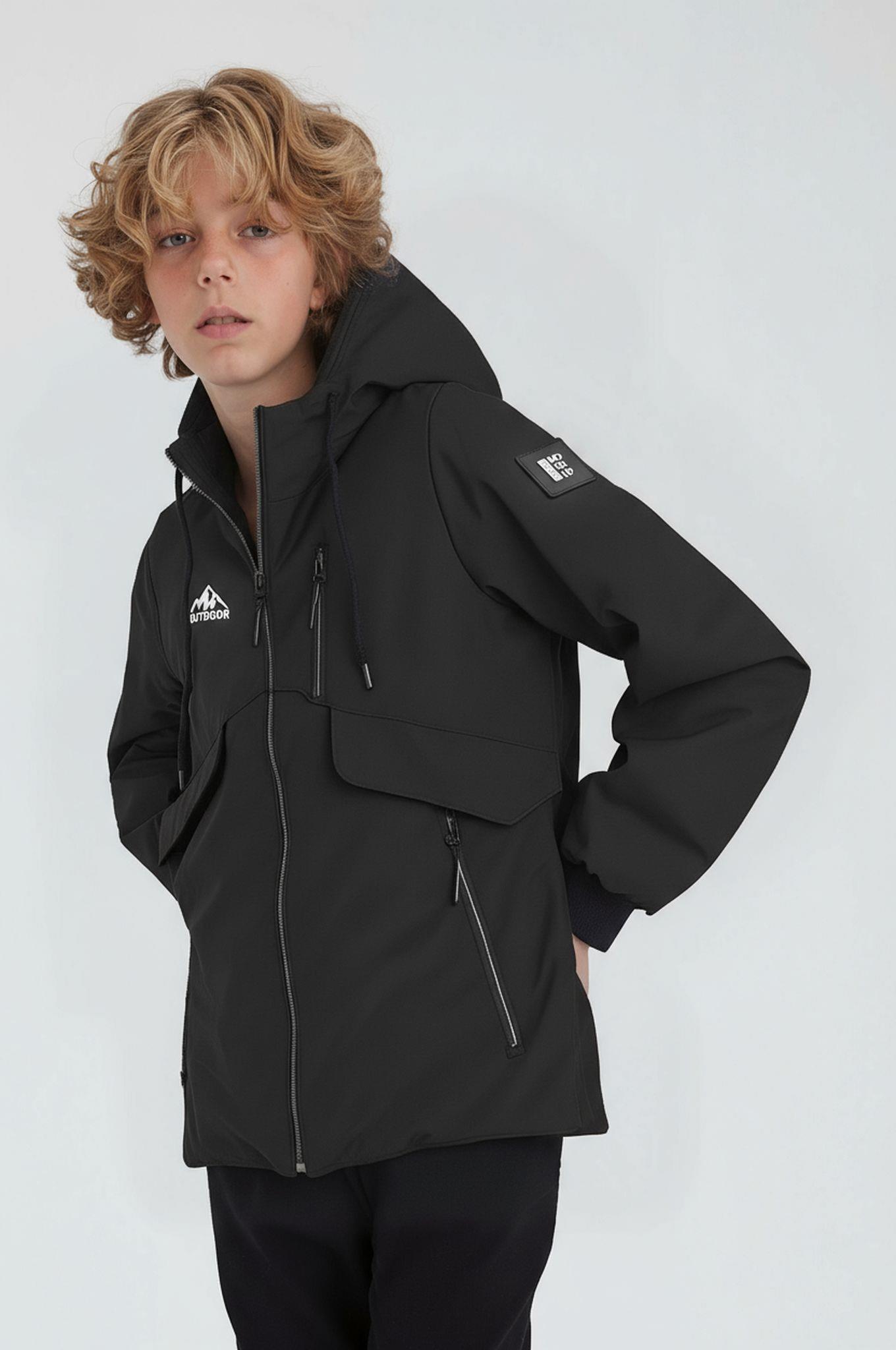 Erkek Çocuk Siyah Outdoor Su İtici Kapüşonlu Kaban – Rüzgar Geçirmez, Hafif ve Dayanıklı