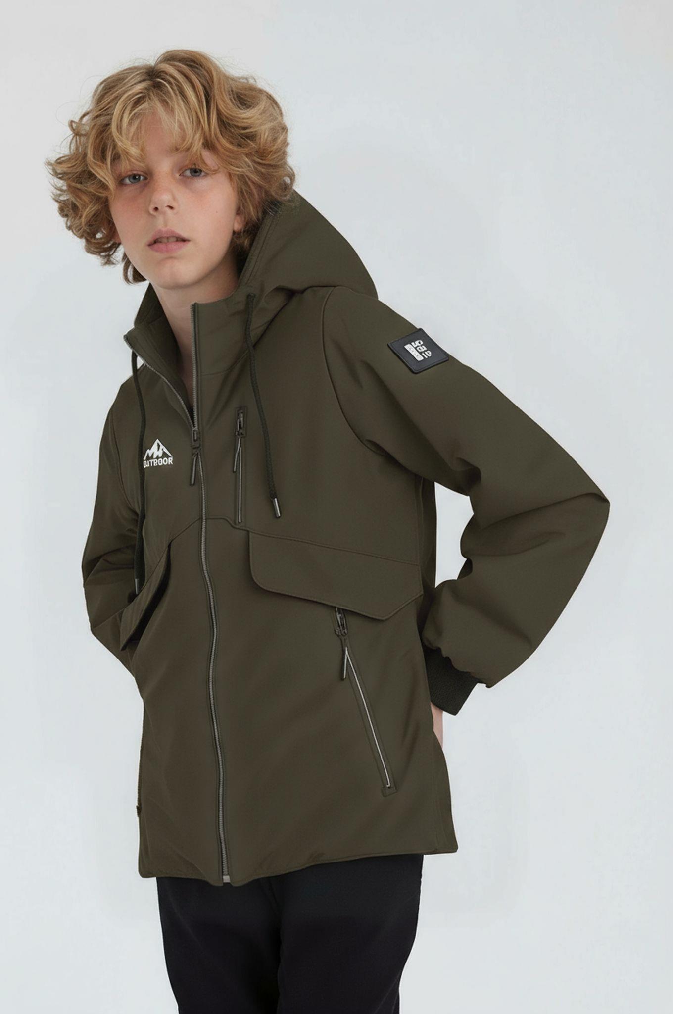 Erkek Çocuk Yeşil Outdoor Su İtici Kapüşonlu Kaban – Rüzgar Geçirmez, Hafif ve Dayanıklı