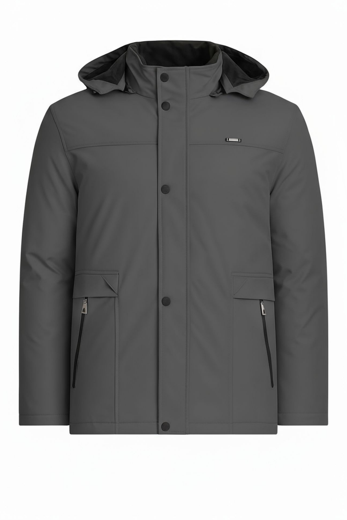 Erkek Gri Pamuk Polyester Karışımlı Kürklü Çıkartılabilir Kapüşonlu Mont&Kaban