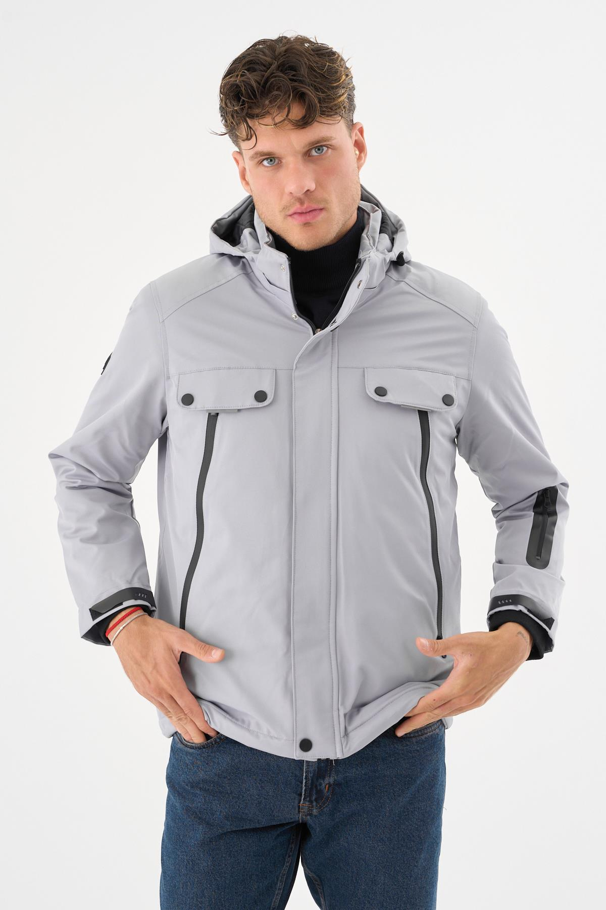 Erkek Gri Su Ve Rüzgar Geçirmez Ayarlanabilir Kol Detaylı Kapüşonlu Mont&Kaban (YM7314)