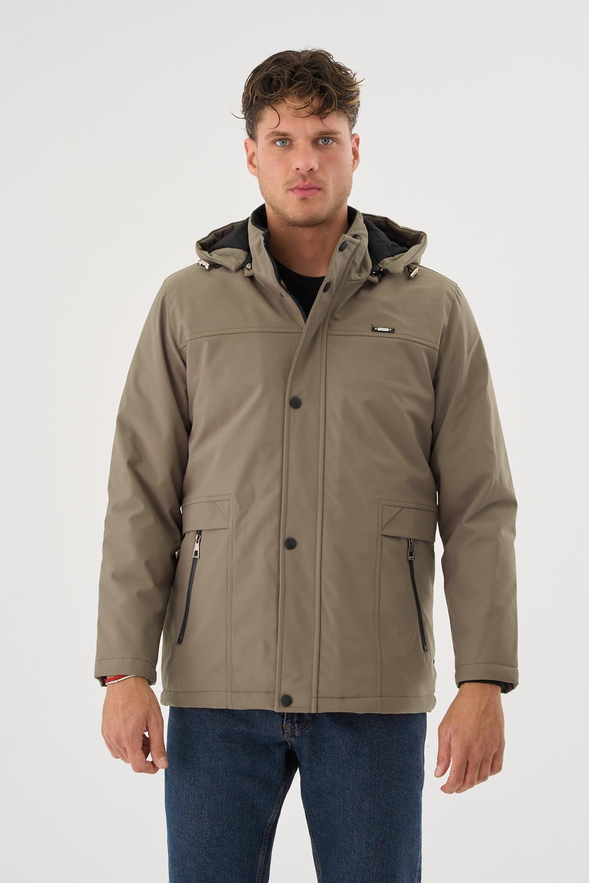 Erkek Krem %100 Su Ve Rüzgar Geçirmez Kürklü Çıkartılabilir Kapüşonlu Mont&Kaban (SV0260)
