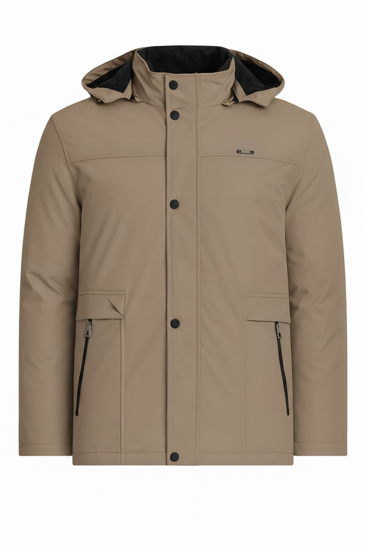 Erkek Krem %100 Su Ve Rüzgar Geçirmez Kürklü Çıkartılabilir Kapüşonlu Mont&Kaban (SVH0260)