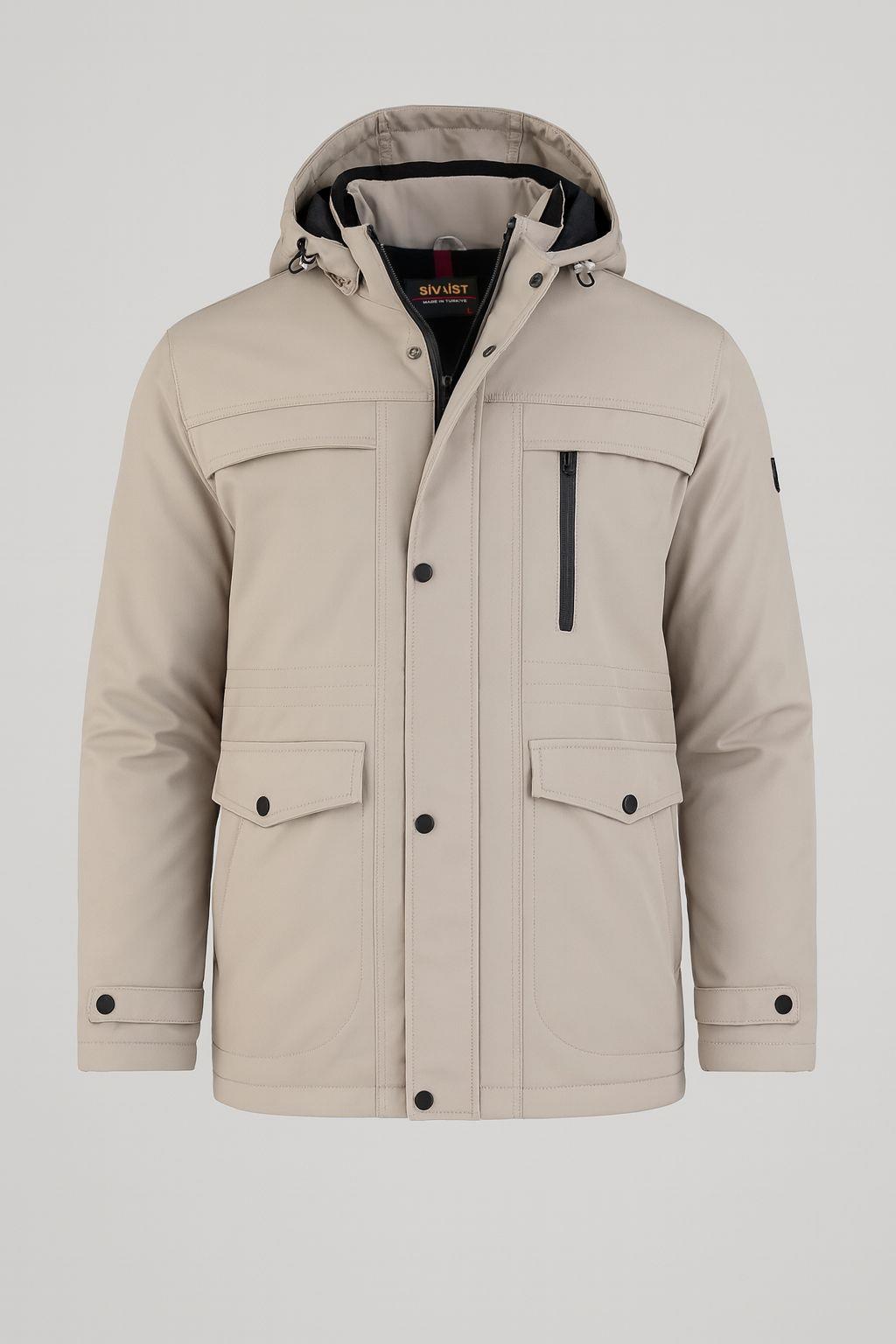 Erkek Krem Pamuk Polyester Karışımlı Kürklü Çıkartılabilir Kapüşonlu Mont&Kaban (SVH0270)