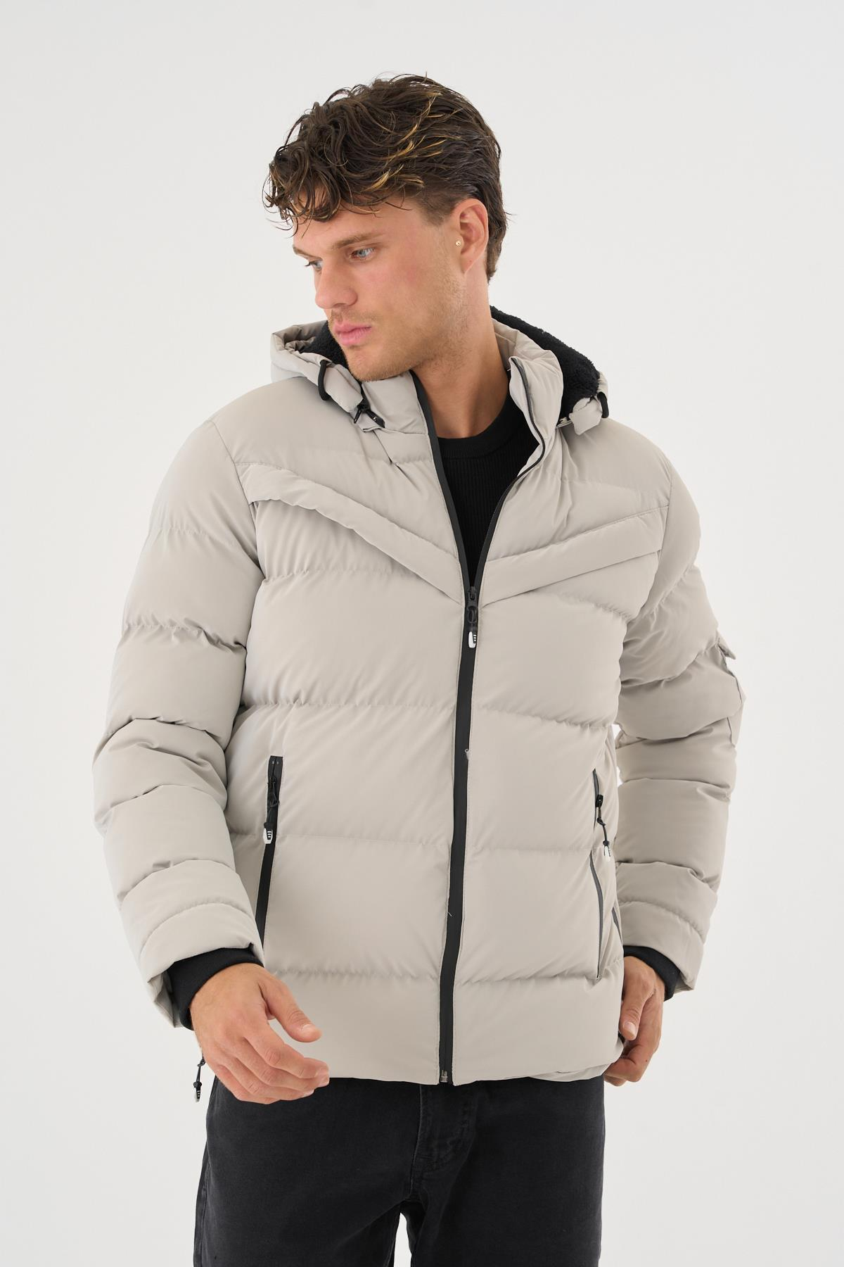 Erkek Krem Su Ve Rüzgar Geçirmez Kürklü Çıkartılabilir Kapüşonlu Mont&Kaban (KB3010)