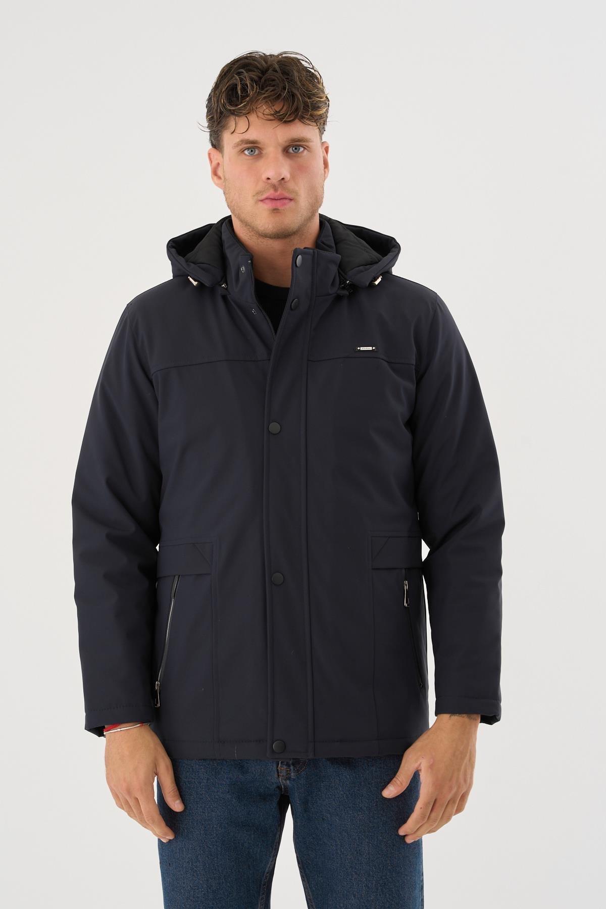 Erkek Lacivert %100 Su Ve Rüzgar Geçirmez Kürklü Çıkartılabilir Kapüşonlu Mont&Kaban