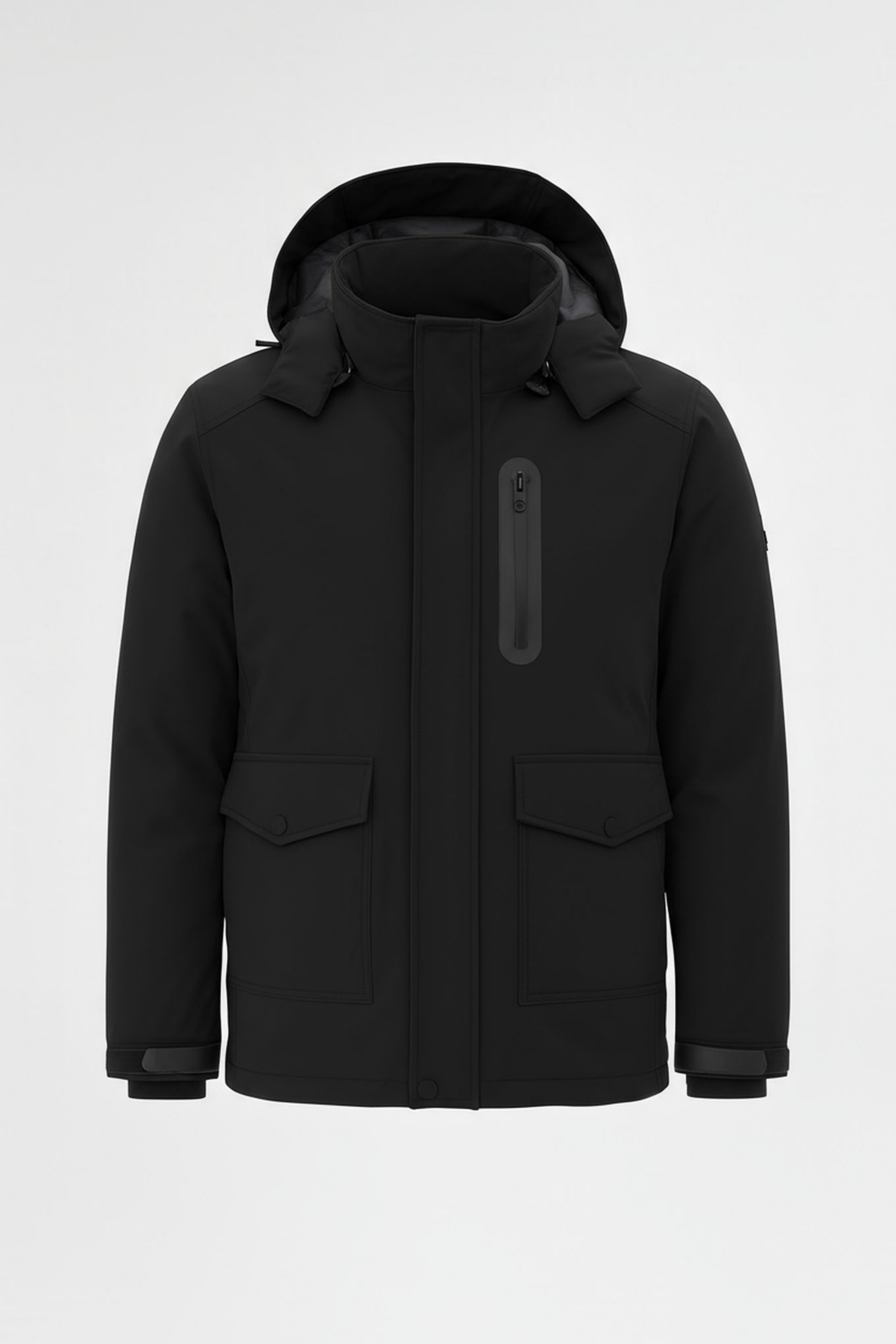 Erkek Siyah Outdoor Su Geçirmez Kapüşonlu Kışlık Kaban – Rüzgar ve Yağmura Dayanıklı