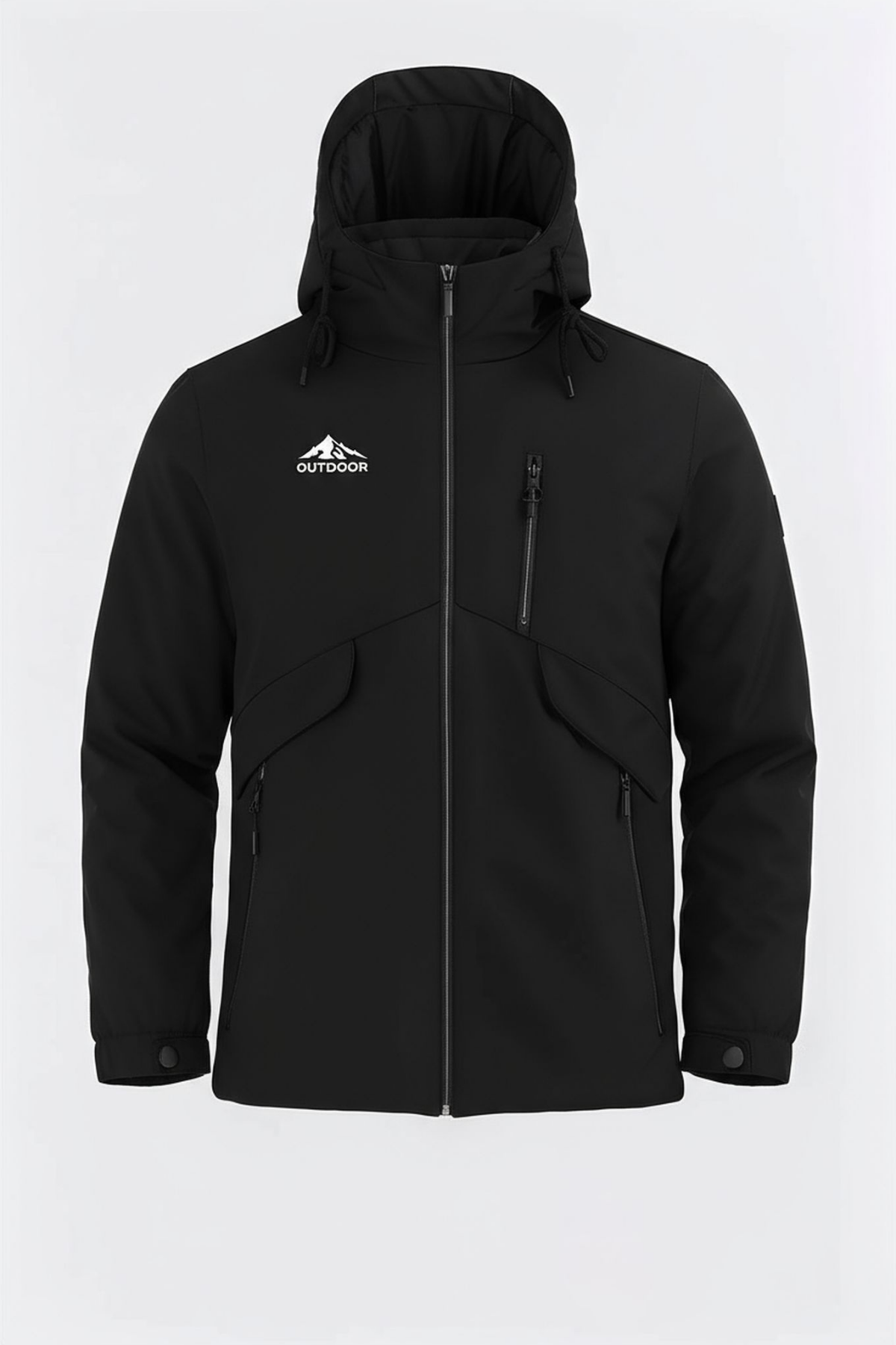 Erkek Siyah Outdoor Su İtici Kapüşonlu Kaban – Rüzgar Geçirmez, Hafif ve Dayanıklı