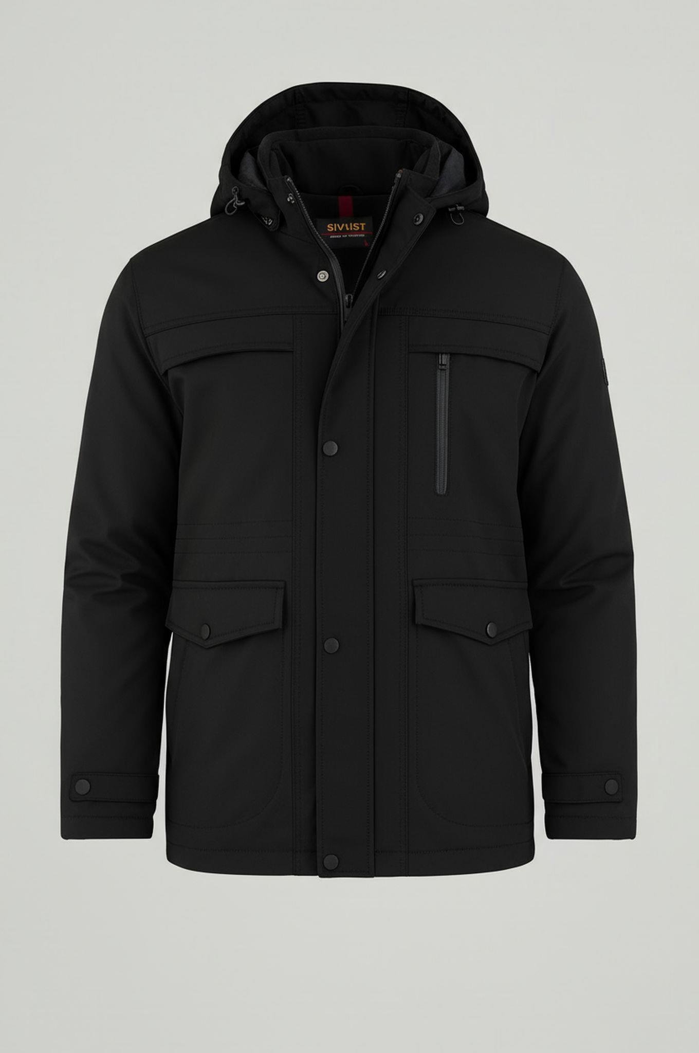 Erkek Siyah Pamuk Polyester Karışımlı Kürklü Çıkartılabilir Kapüşonlu Mont&Kaban (SVH0270)
