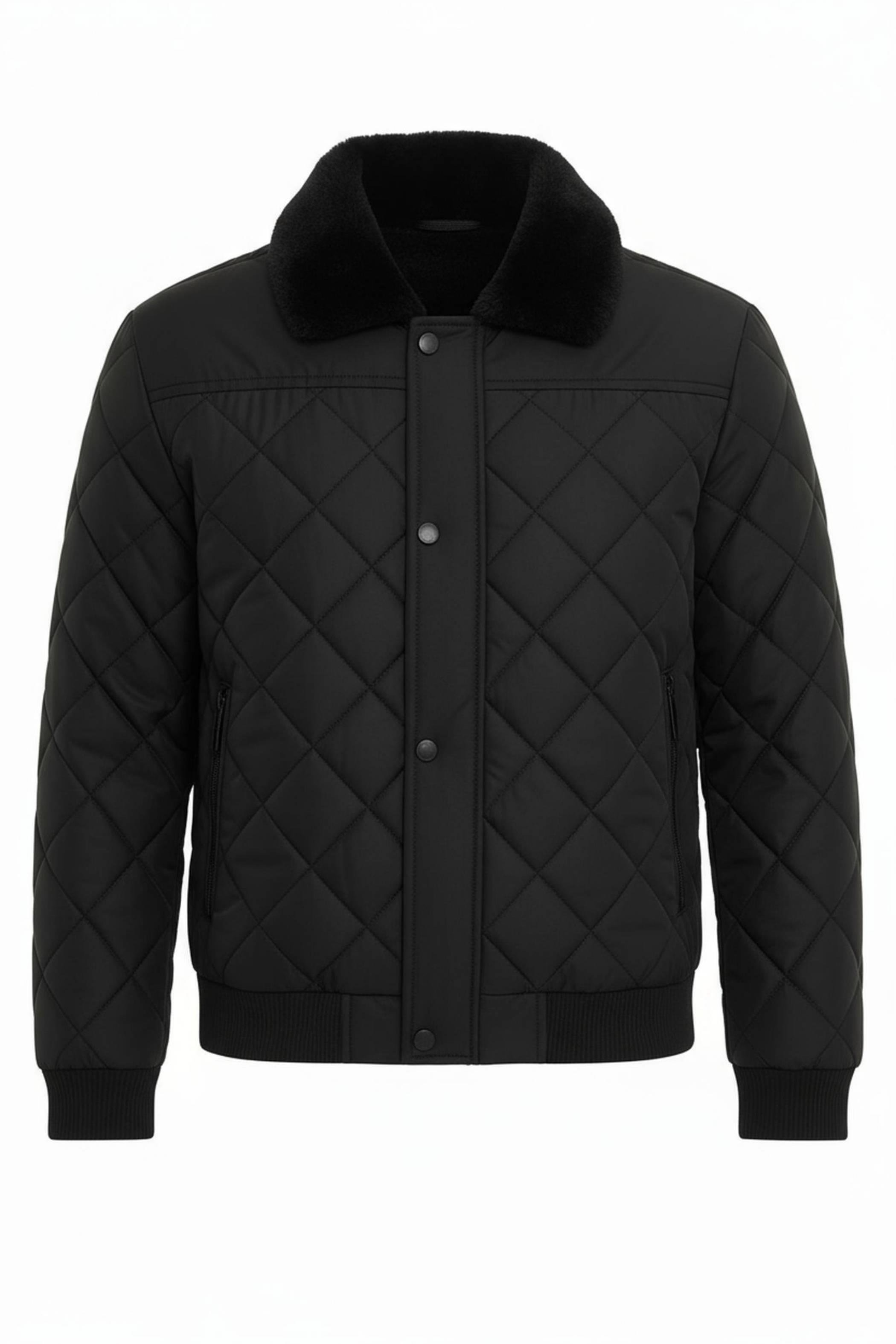 Erkek Siyah Su Ve Rüzgar Geçirmez Yakası Ve İçi Kürklü Kapitone Mont