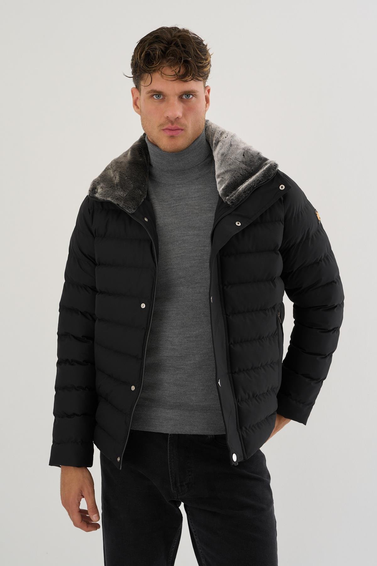Erkek Siyah Su Ve Rüzgar Geçirmez Yükseltilebilir Yaka Kürklü Mont&Kaban (YM4309)