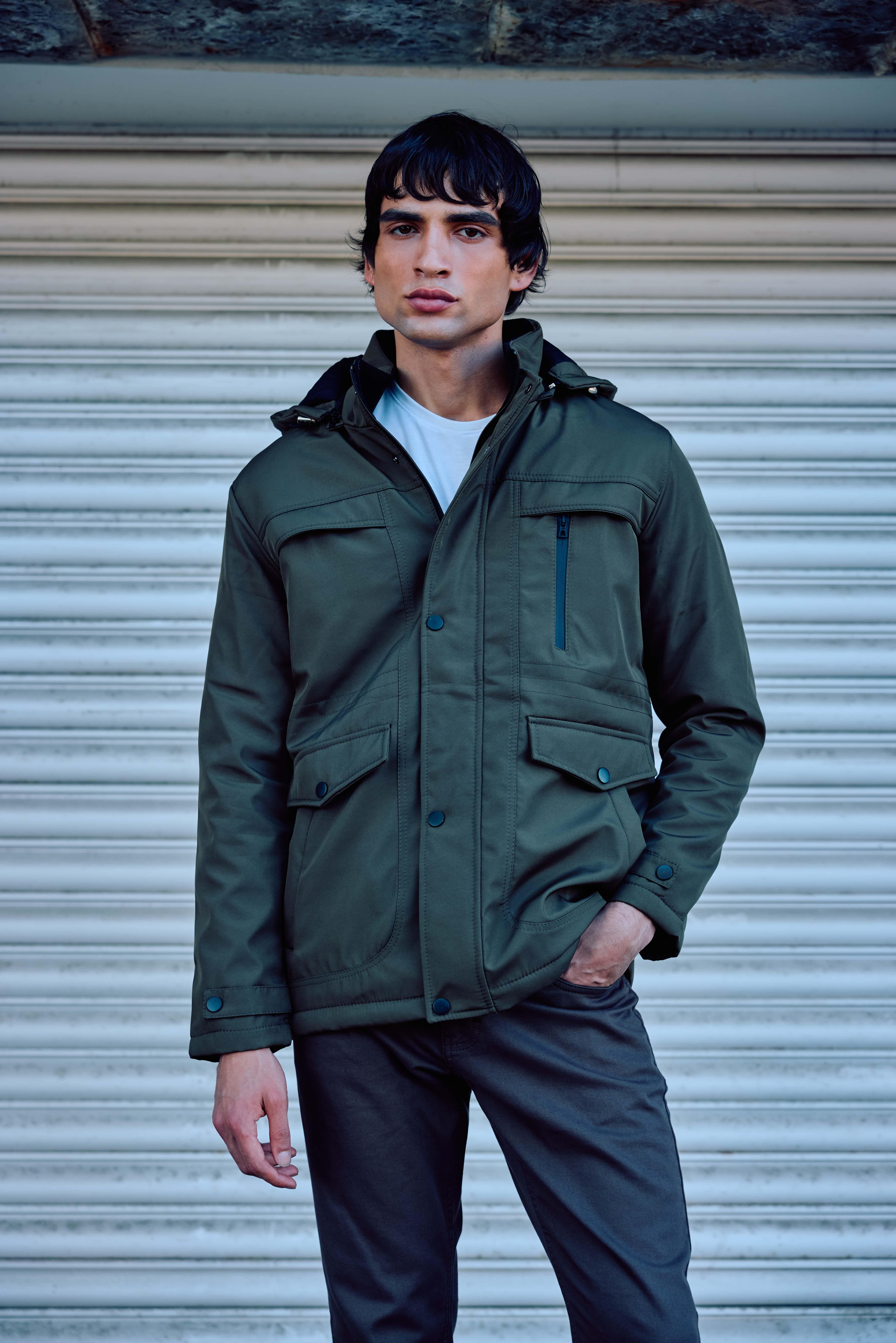 Erkek Yeşil Pamuk Polyester Karışımlı Kürklü Çıkartılabilir Kapüşonlu Mont&Kaban