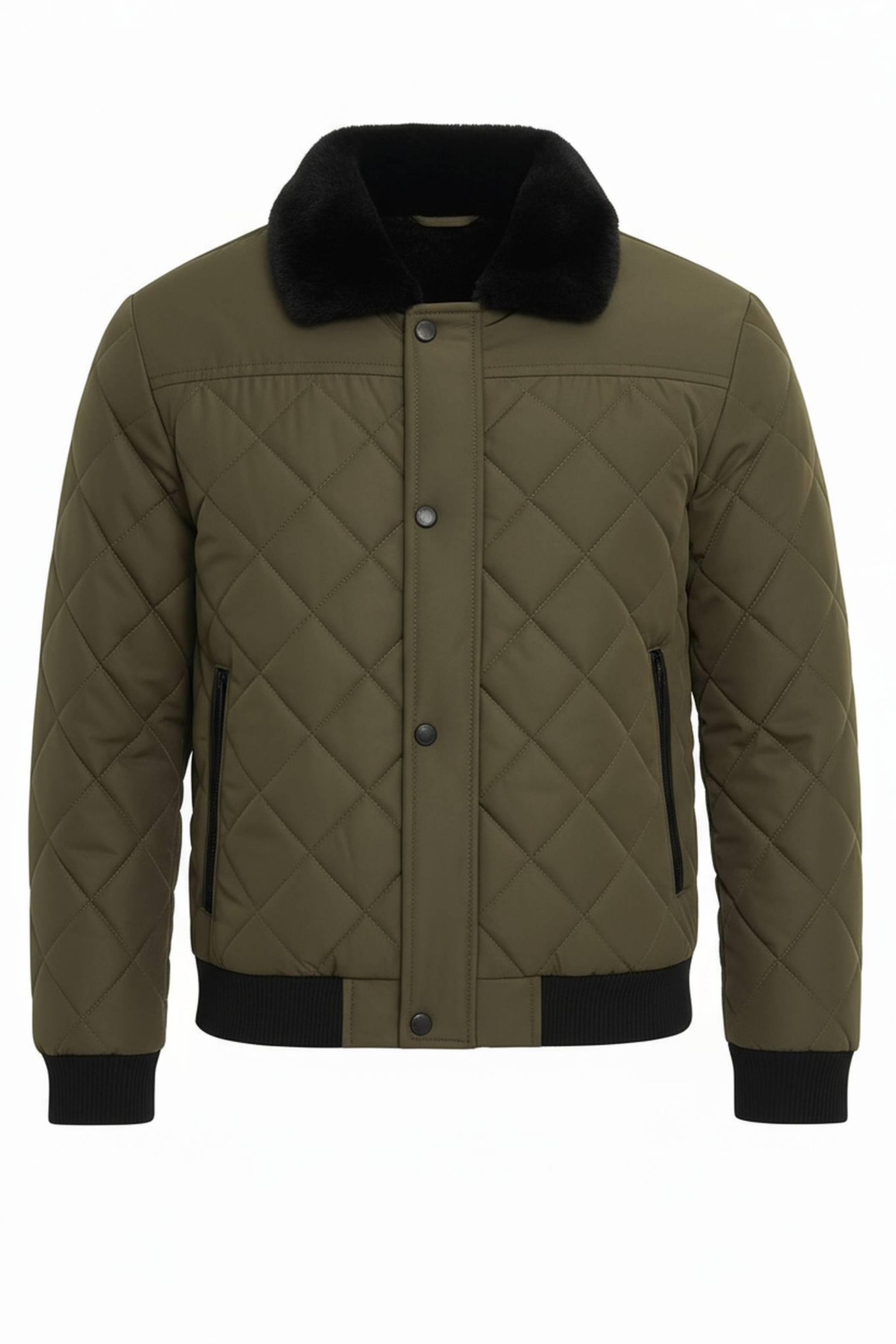 Erkek Yeşil Su Ve Rüzgar Geçirmez Yakası Ve İçi Kürklü Kapitone Mont