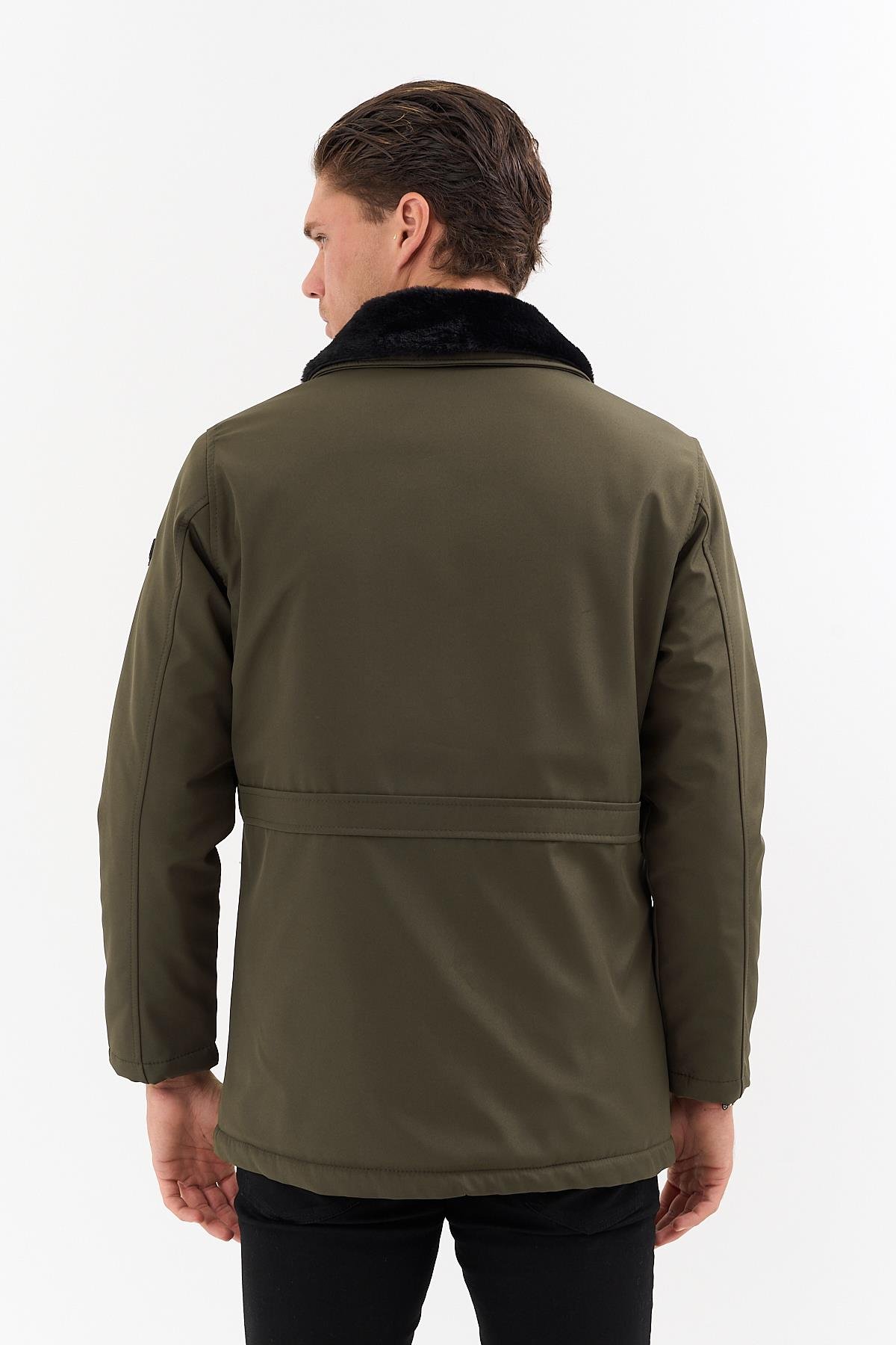 Erkek Yeşil Yakası Çıkartılabilir Kürklü Su İtici İçi Kürklü Kaban – Rüzgar Geçirmez, Hafif ve Dayanıklı