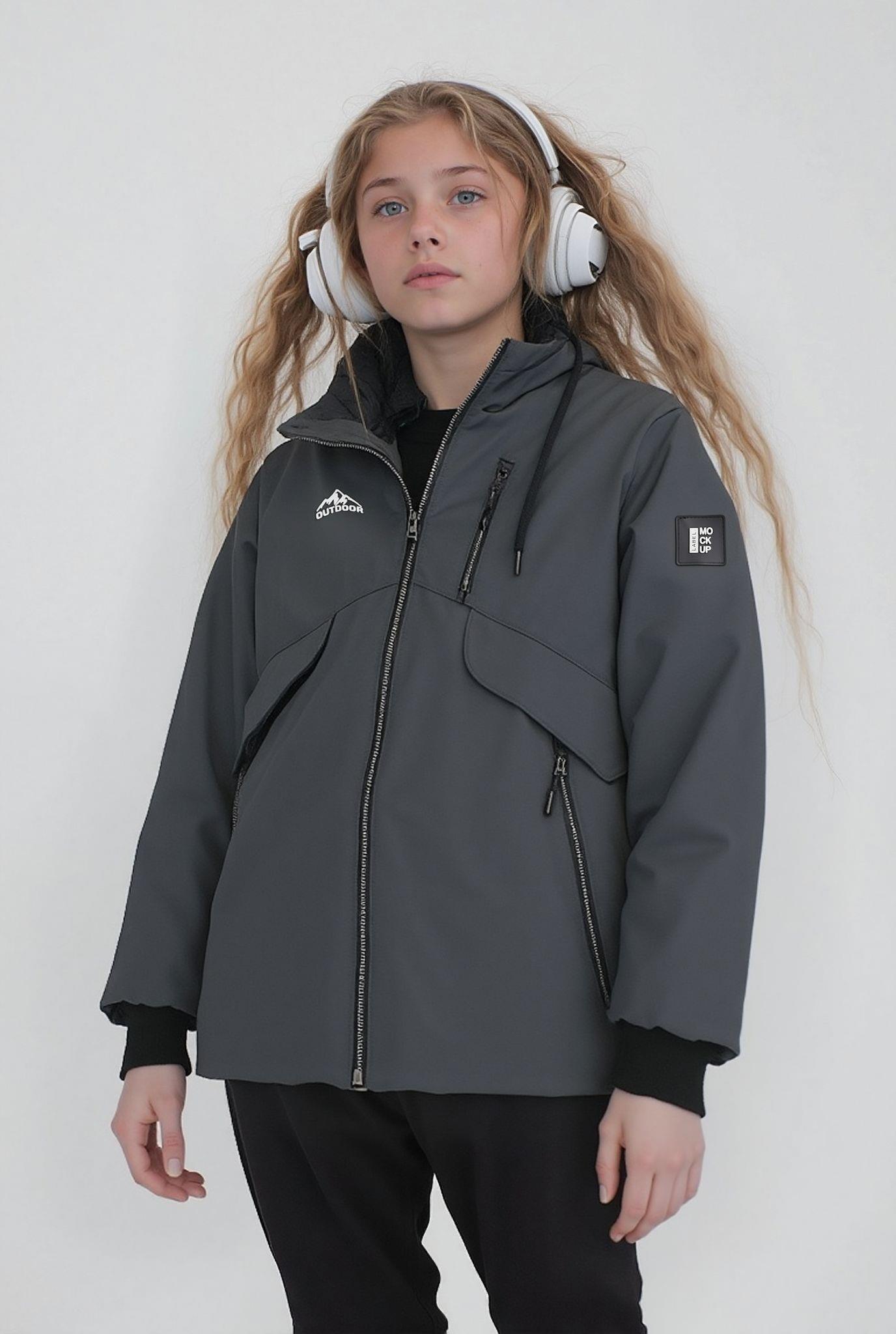 Kız Çocuk Gri Outdoor Su İtici Kapüşonlu Kaban – Rüzgar Geçirmez, Hafif ve Dayanıklı
