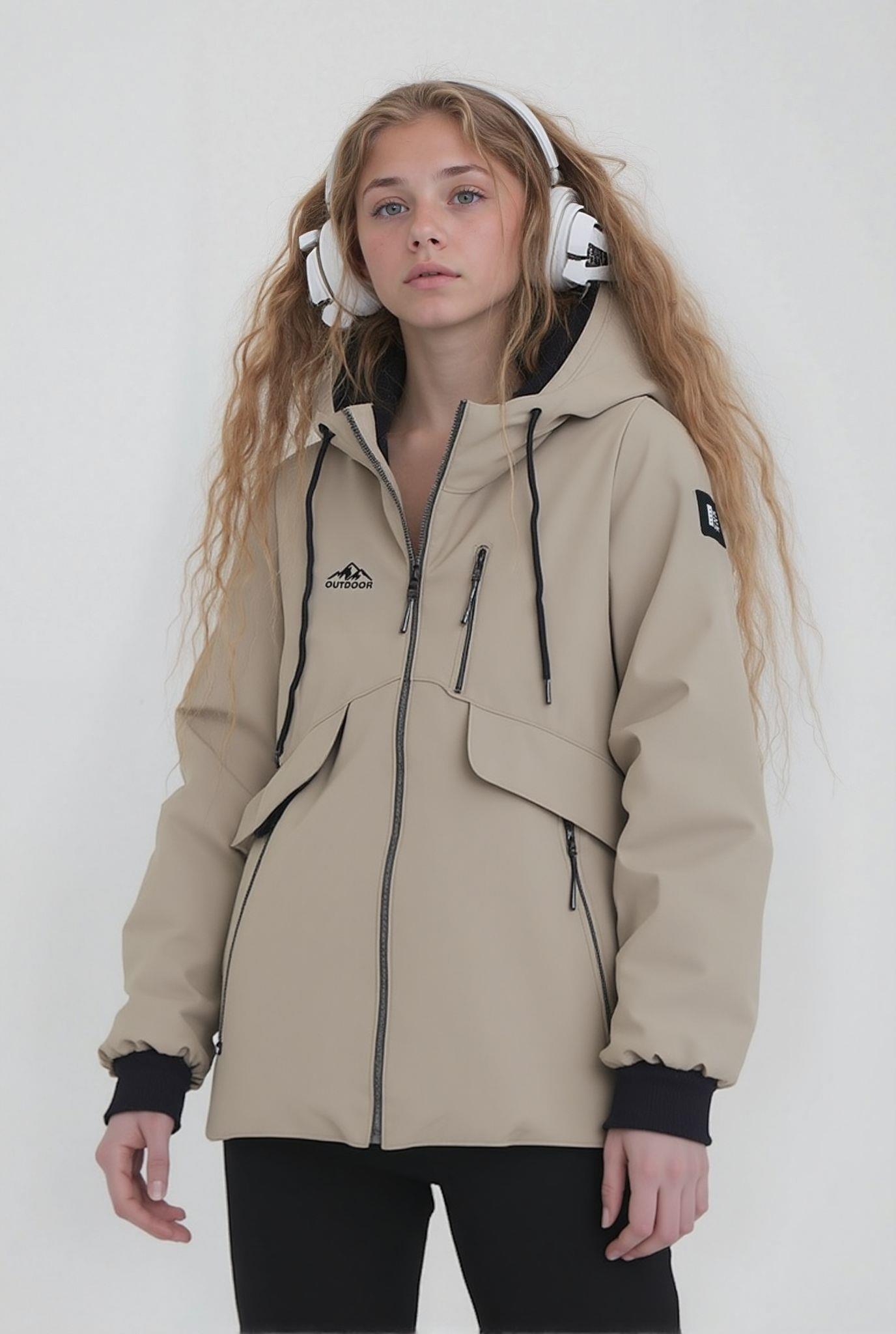 Kız Çocuk Krem Outdoor Su İtici Kapüşonlu Kaban – Rüzgar Geçirmez, Hafif ve Dayanıklı